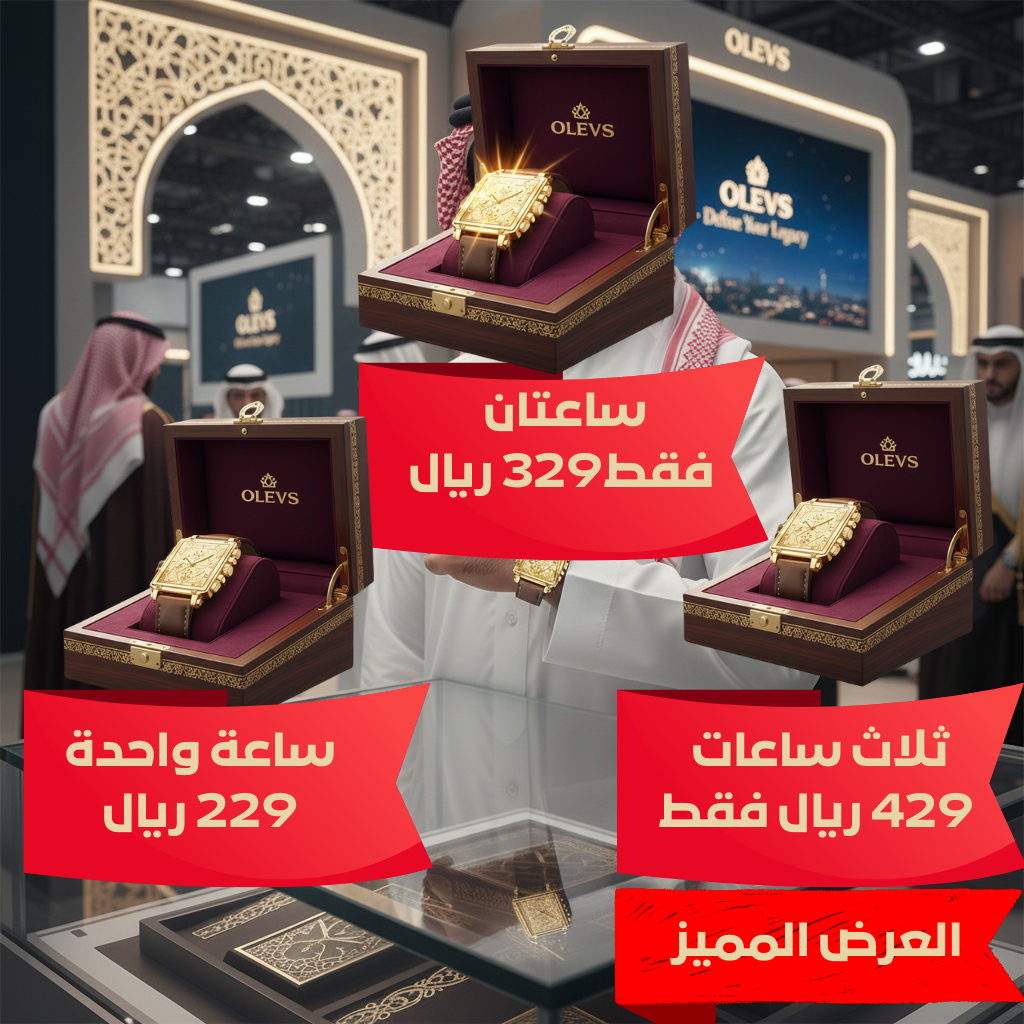 ساعة olevs رجالية فاخرة بتصميم مربع ذهبي وسوار جلدي أنيق